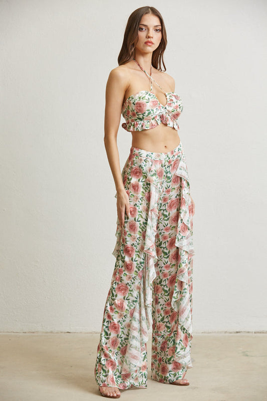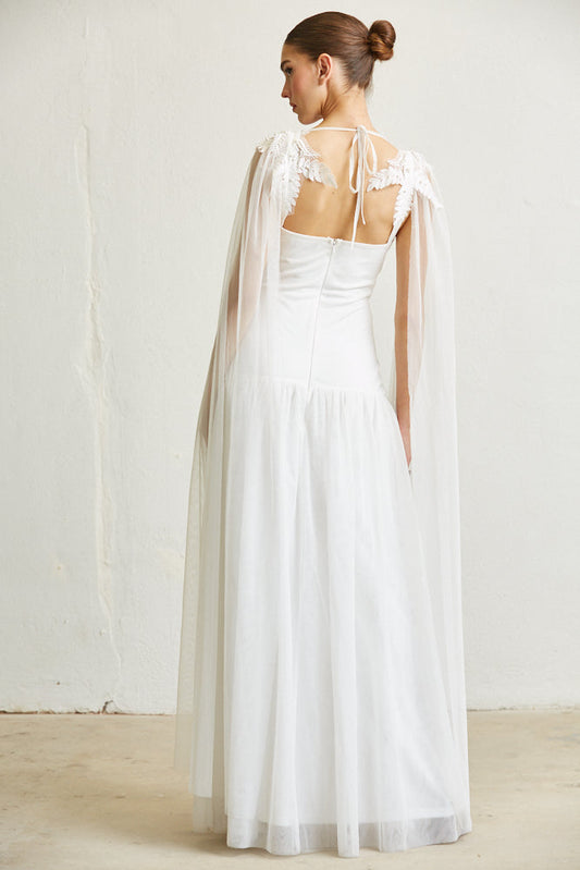 Sheer Maxi Dress - Faux Feather Cuffs - Magnolia