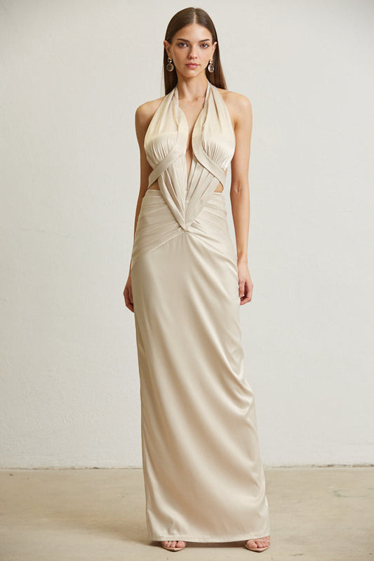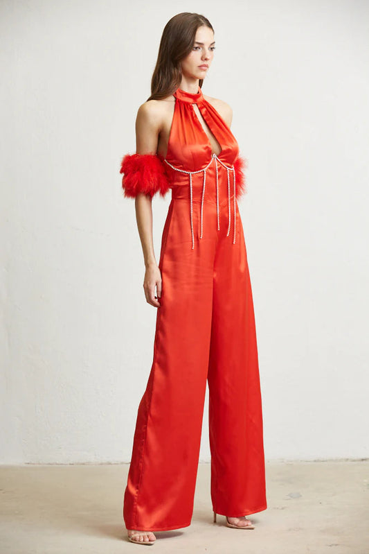 Valentina Luxe Satin Mockneck Formal Party Evening Dress Jumpsuit