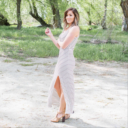 Vestido largo de cuello redondo