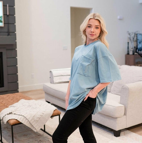 Camiseta boyfriend con borde sin rematar y bolsillo frontal extragrande