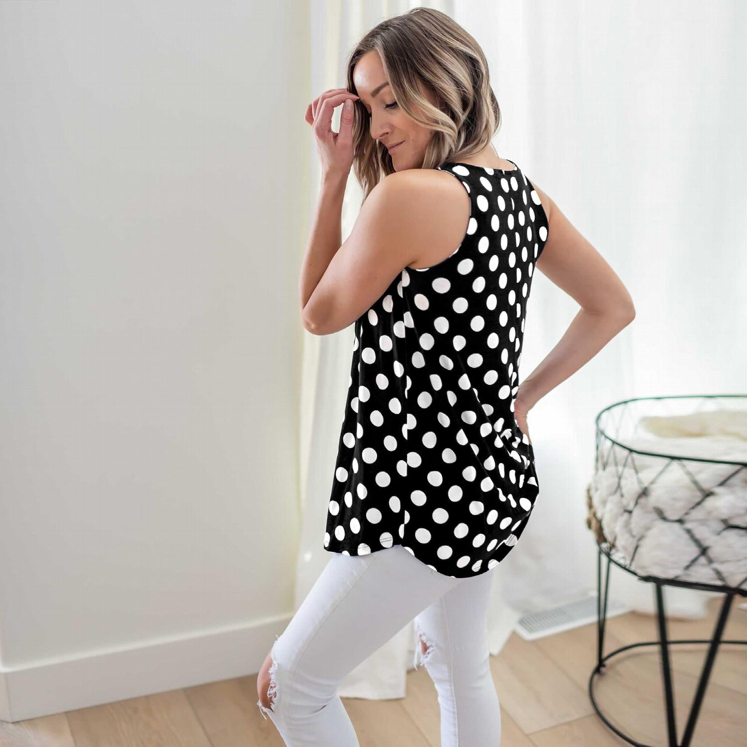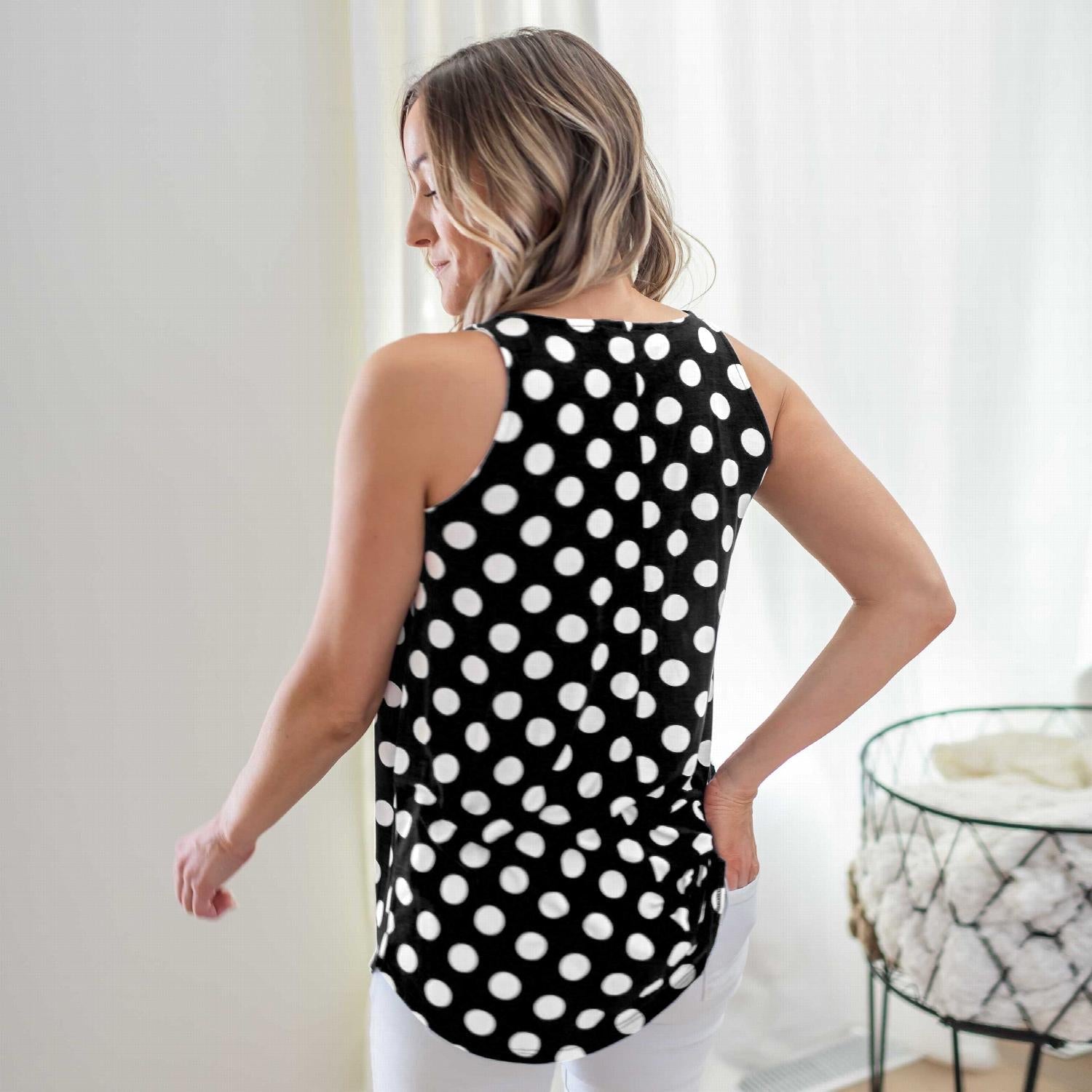 Top de lunares sin mangas con cuello redondo y dobladillo redondeado