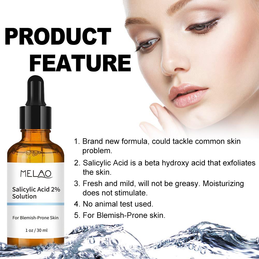 Suero de ácido salicílico al 2%, exfoliante suave para el acné, aclara los poros y el sebo.